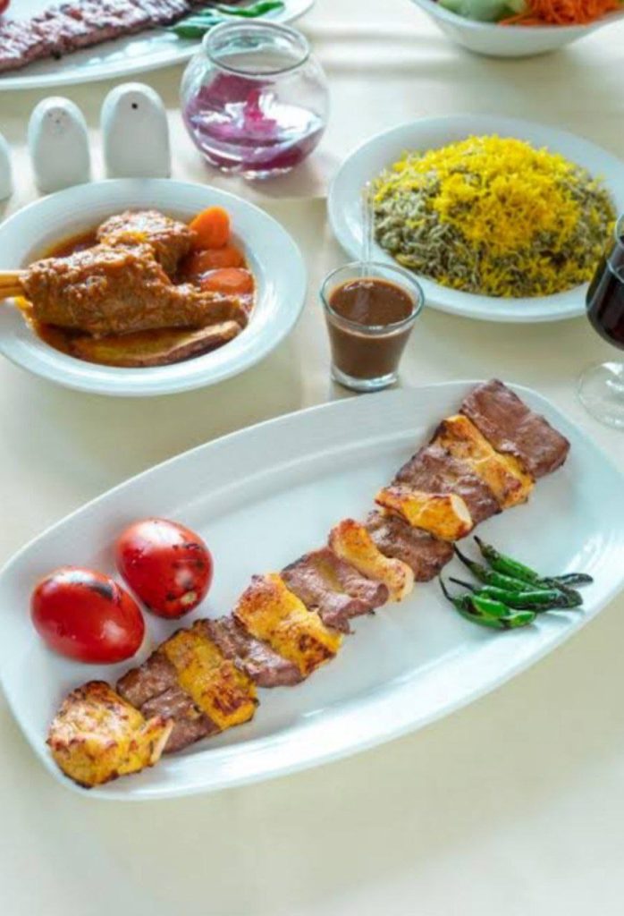 منوی متنوع و کامل — از غذاهای ایرانی با برنج و پلو گرفته تا خورشتهای سنتی و انواع کبابها، همهچیز در این منو جای دارد.
