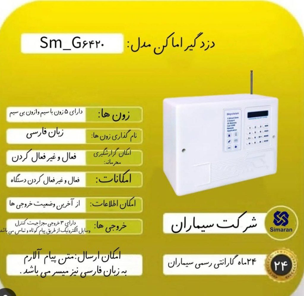 • ارائه سیستم‌های ضد سرقت سیماران شامل سنسورها، آژیرها و دزدگیرهای هوشمند