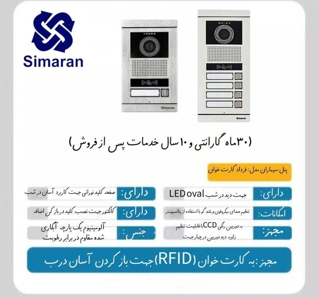 • نصب و راه‌اندازی درب بازکن صوتی و تصویری سیماران برای منازل و ساختمان‌ها