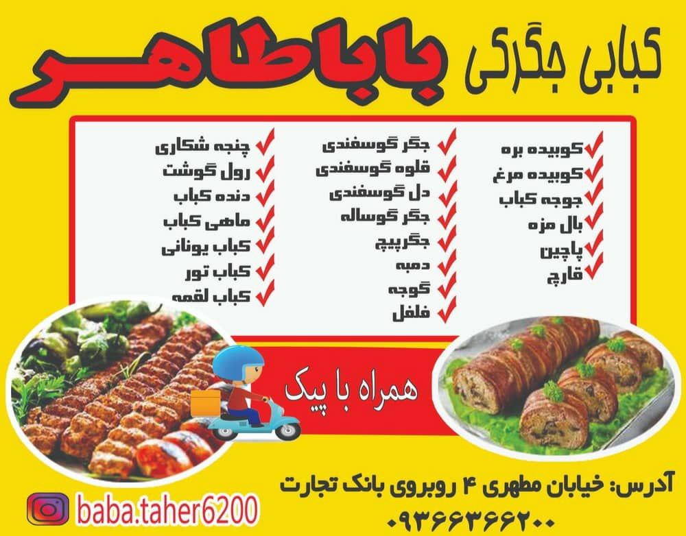 منوی متنوع و کامل کبابی بابا طاهر 🔥