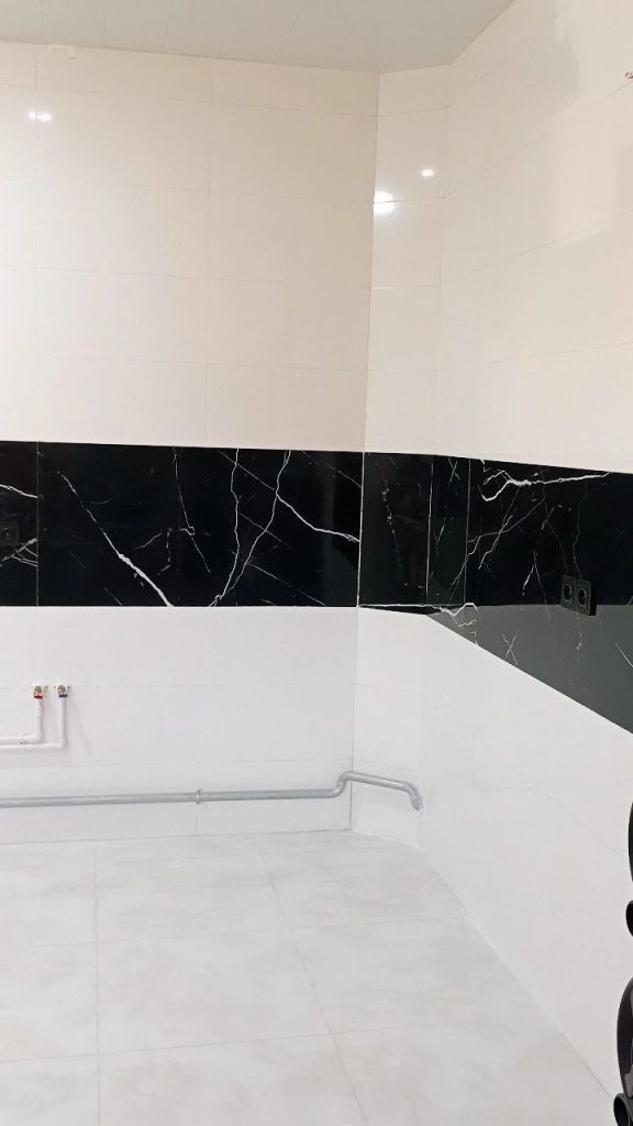 - کاشیکاری سرویسهای بهداشتی و آشپزخانهها: با تمرکز بر آببندی کامل و اجرای دقیق قرنیزها و زوایای ۹۰ درجه.