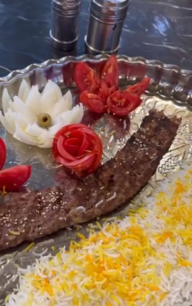 - برنج ایرانی درجه یک: سرو با عطر زعفران و کره حلال. 🍚