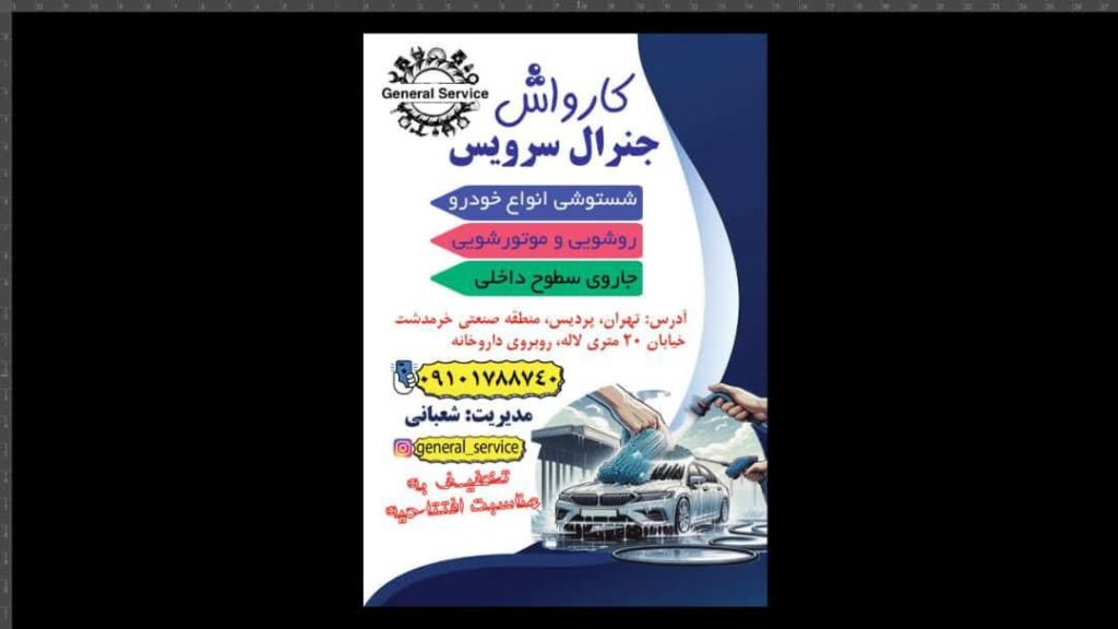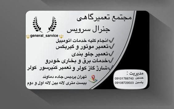 خدمات تخصصی خودرو و کارواش :کارواش ۲۰۰هزارتومن جاروبرقی و واکس رایگان. اگر به دنبال یک تعمیرگاه خودرو حرفهای و کامل هستید، مجتمع تعمیرگاه جنرال سرویس در پردیس بهترین گزینه برای شماست. مجتمع تعمیرگاه جنرال سرویس با مدیریت آقای یاسین و آقای حسین سالهاست خدمات تخصصی تعمیر، سرویس و نگهداری انواع خودروها را ارائه میدهد و توانسته رضایت مشتریان خود را در پردیس و اطراف آن جلب کند.