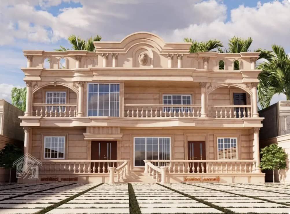 طراحی و اجرای نما رومی کلاسیک با نقشبرجستهها، ستونها و سرستونهای زیبا.